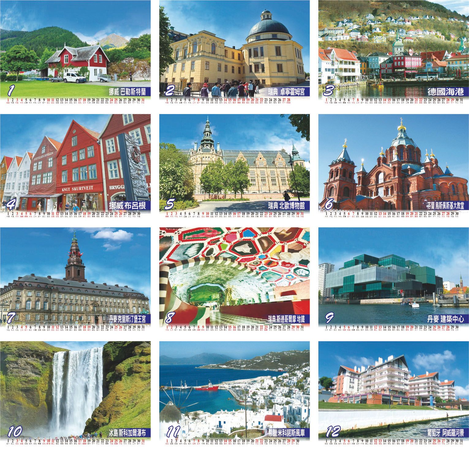 25開三角檯曆(歐洲風景)